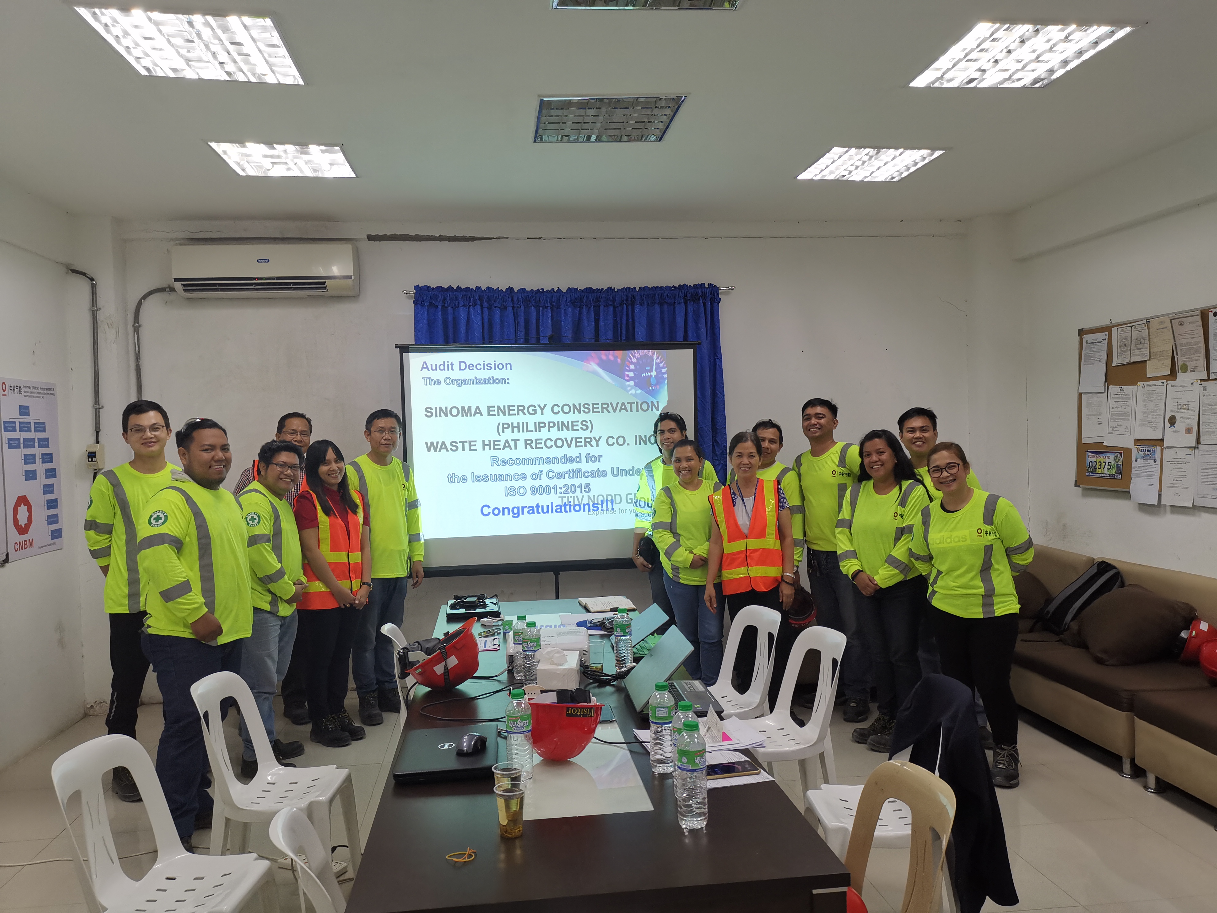 During the on-site audit, the TUV Nord Philippines audit team conducted a comprehensive evaluation of the quality management system of the Philippine subsidiary.The audit team deemed that the management of the subsidiary in the Philippines attached great importance to it from the perspective of thought. The working procedures of each team are complete, reasonably organized, and the division of labor is clear.The system standards has been conscientiously implemented, with a good sense of management, focusing on the attention of customers, full participation, controlled process, continuous improvement, to meet the requirements of the SOLID cement plant, to provide high-quality services for the partners.The management system of the subsidiary in the Philippines is perfect, the execution is thorough, the relationship is clear and definite, the management system is consistent with the audit criteria, so the company agreed to issue the confirmation certificate, and put forward the rectification requirements for the problems existing in the subsidiary.