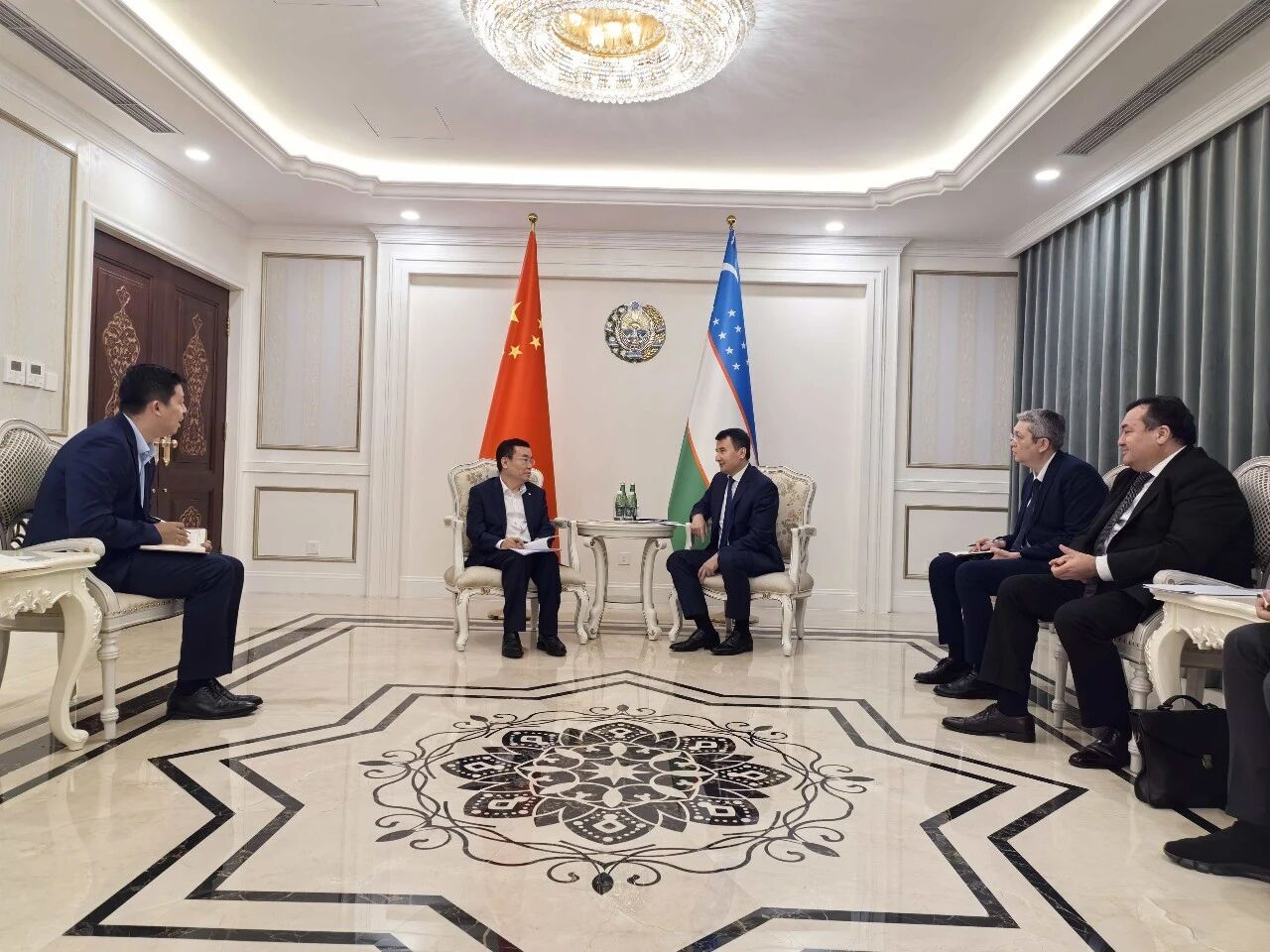 Meng Qinglin extended a warm welcome to Deputy Prime Minister Khodjaev for his visit to China, expressed sincere gratitude for the long-term support from the Uzbek government, and provided a detailed overview of the progress and business expansion of Sinoma Energy Conservation Limited's projects in Uzbekistan. He stated that the company will continue to deepen its involvement in the development and construction of major projects in Uzbekistan in areas such as clean energy, energy conservation, and environmental protection. He expressed hope to work with the Uzbek government to implement the outcomes of the SCO Tianjin Summit, continuously expand pragmatic cooperation, jointly advance the process of green transformation and industrial upgrading, and make positive contributions to deepening the friendly relations between the two countries and promoting Uzbekistan's energy transition and economic development.