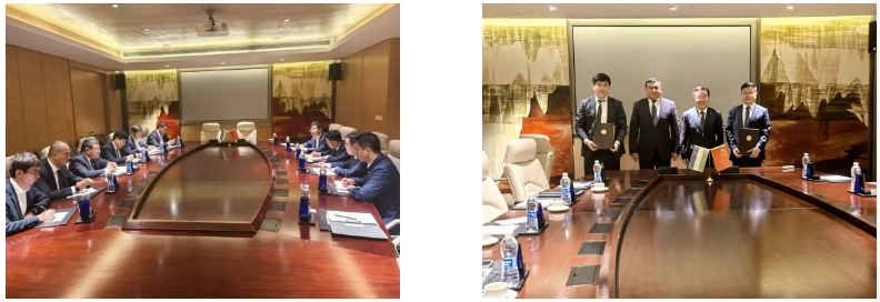 On August 31st, Meng Qinglin met in Beijing with a delegation led by Jurabek Mirzamakhmudov, Minister of Energy of Uzbekistan. Both sides engaged in in-depth and friendly discussions on strengthening cooperation in areas such as clean energy, energy conservation, and emission reduction, and signed cooperation agreements for new projects. Zuo Dayong, Vice President of Sinoma Energy Conservation Limited, accompanied and participated in the talks.