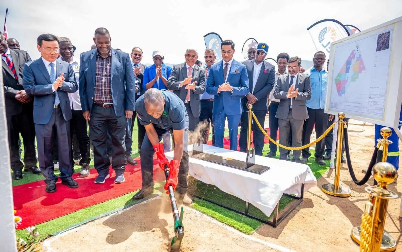 Mr. Makozo Chikote personally participated in the groundbreaking ceremony, wishing for the project's early completion and power generation.